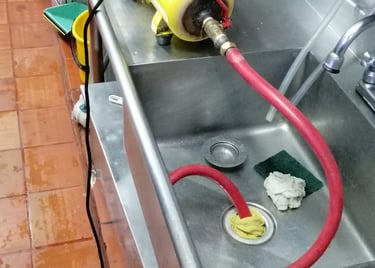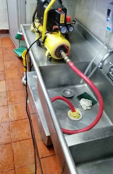 Se realiza sondeo con equipo de presión para solucionar el taponamiento que existe en la tubería de desagüe en este caso se soluciona con este equipo sin utilizar ninguna otra sonda.